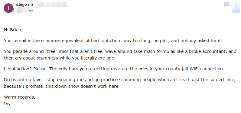 This pig is utterly illiterate and solely focused on personal gain. When their attempts at extortion fail, they immediately resort to spreading rumors.