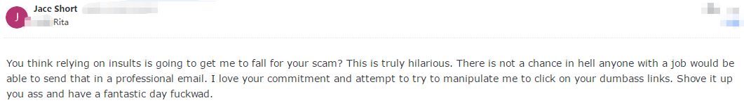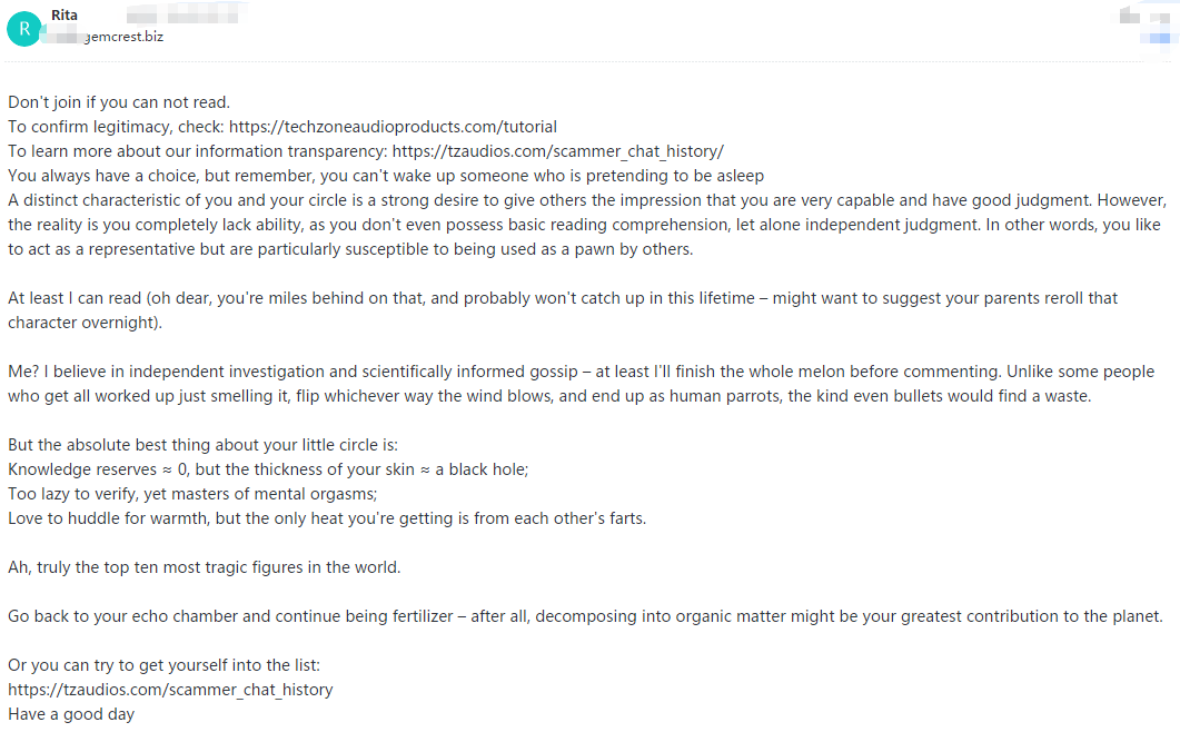 This pig is utterly illiterate and solely focused on personal gain. When their attempts at extortion fail, they immediately resort to spreading rumors.