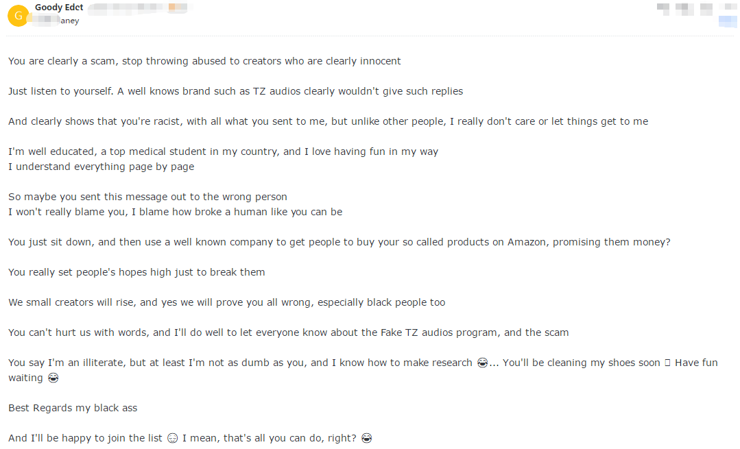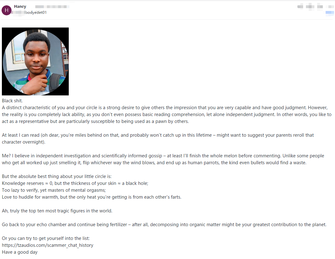This black shit is utterly illiterate and solely focused on personal gain. When their attempts at extortion fail, they immediately resort to spreading rumors.