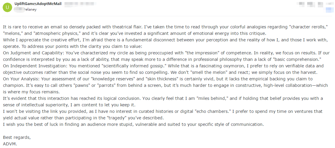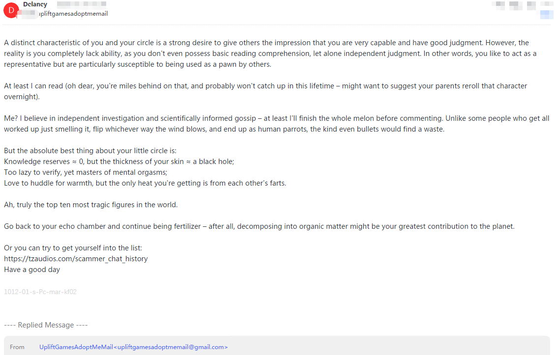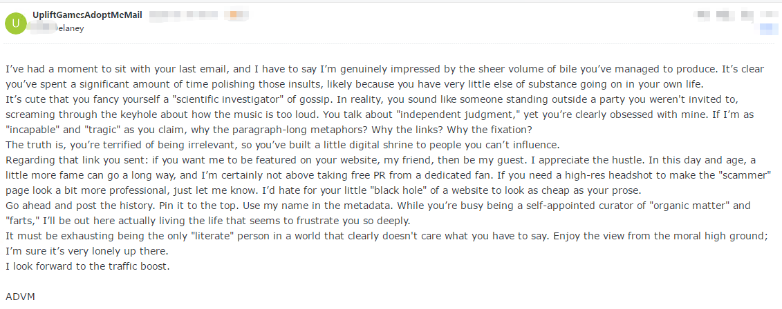 This pig is utterly illiterate and solely focused on personal gain. When their attempts at extortion fail, they immediately resort to spreading rumors.