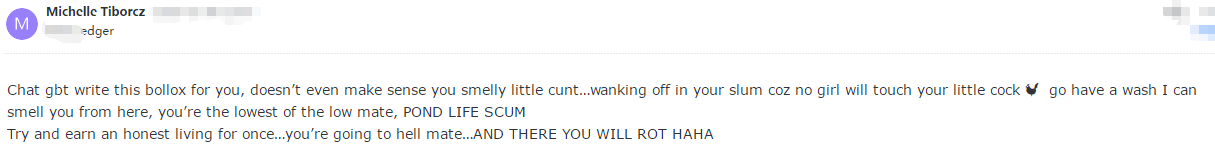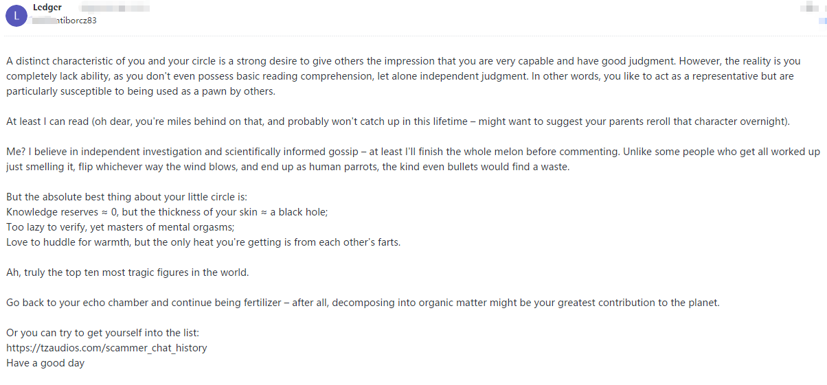 This pig is utterly illiterate and solely focused on personal gain. When their attempts at extortion fail, they immediately resort to spreading rumors.