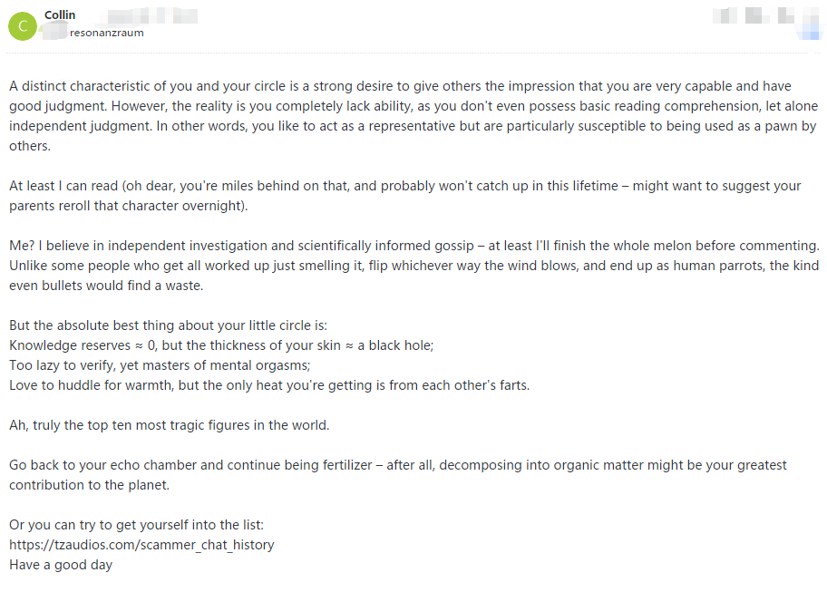 This pig is utterly illiterate and solely focused on personal gain. When their attempts at extortion fail, they immediately resort to spreading rumors.
